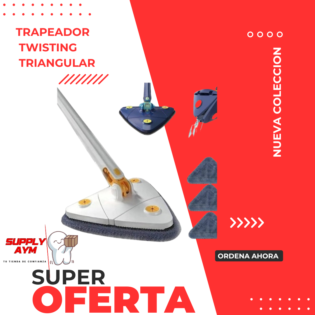 Haz la limpieza más fácil y rápida con esta mopa giratoria triangular, diseñada para llegar a todos los rincones de tu hogar. Su diseño ergonómico y cabezal giratorio de 360° permite limpiar debajo de muebles, esquinas y espacios difíciles.